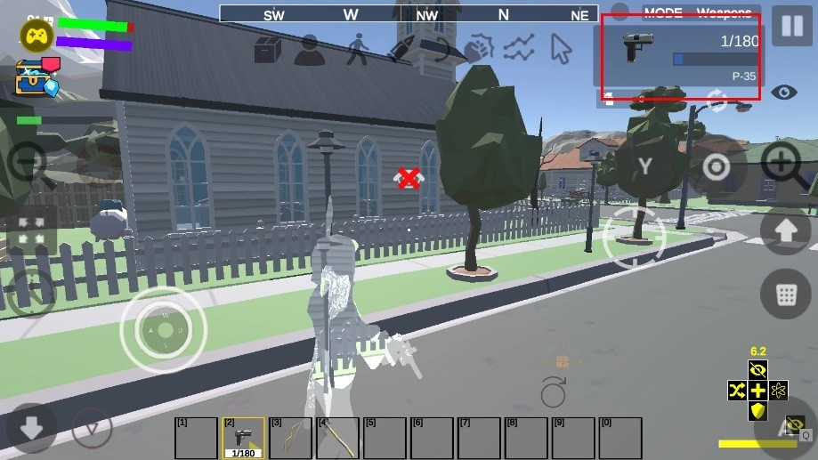 注意观察右上角的武器栏,可切换【P-35】这类枪械,以适配不同距离和强度的战斗场景;当子弹耗尽时,只需点击一下就能完成换弹操作。