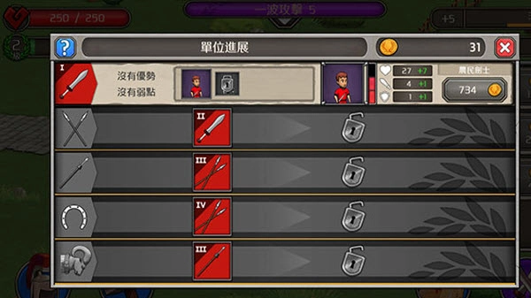 点击普通按钮旁的单位按钮,即可打开兵种界面进行兵种升级。