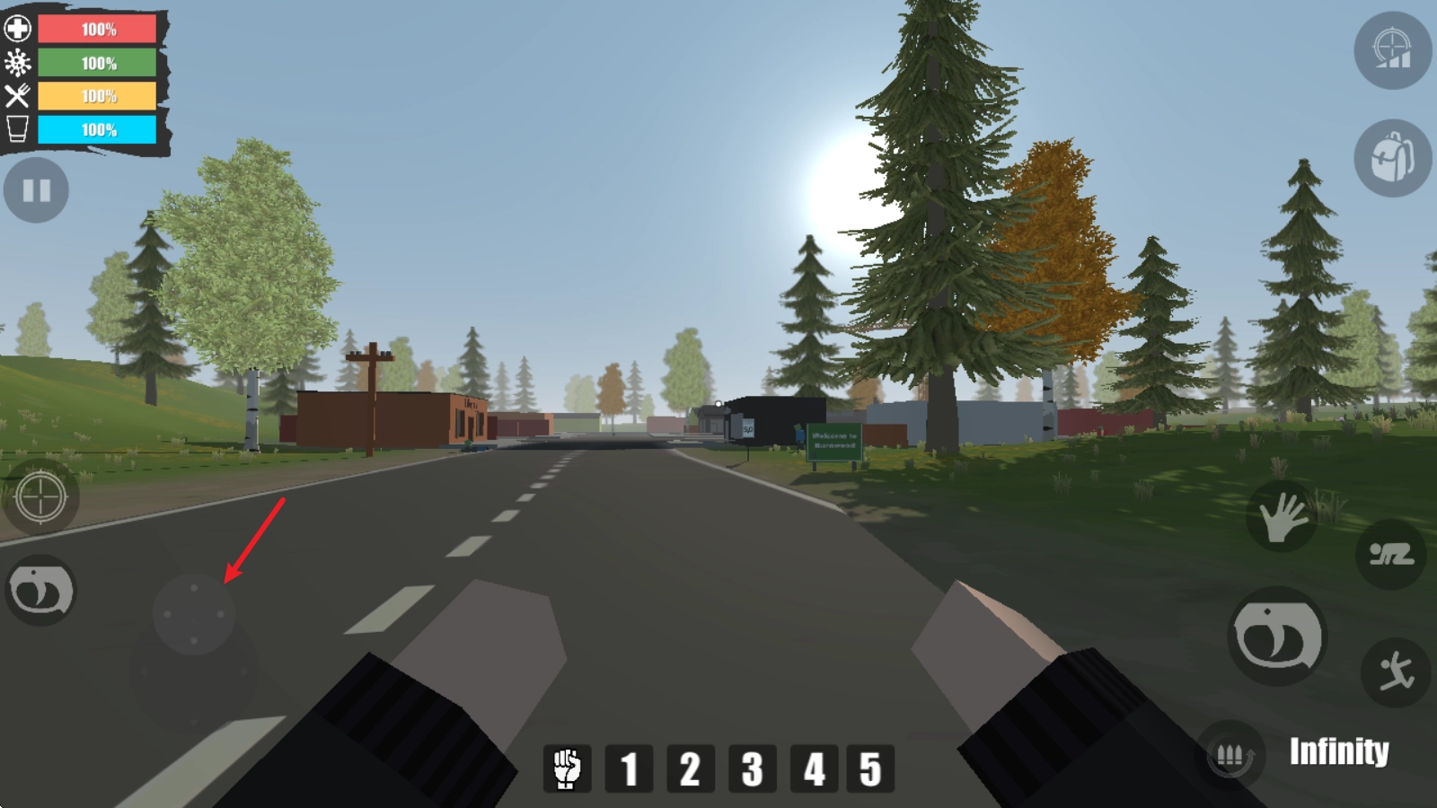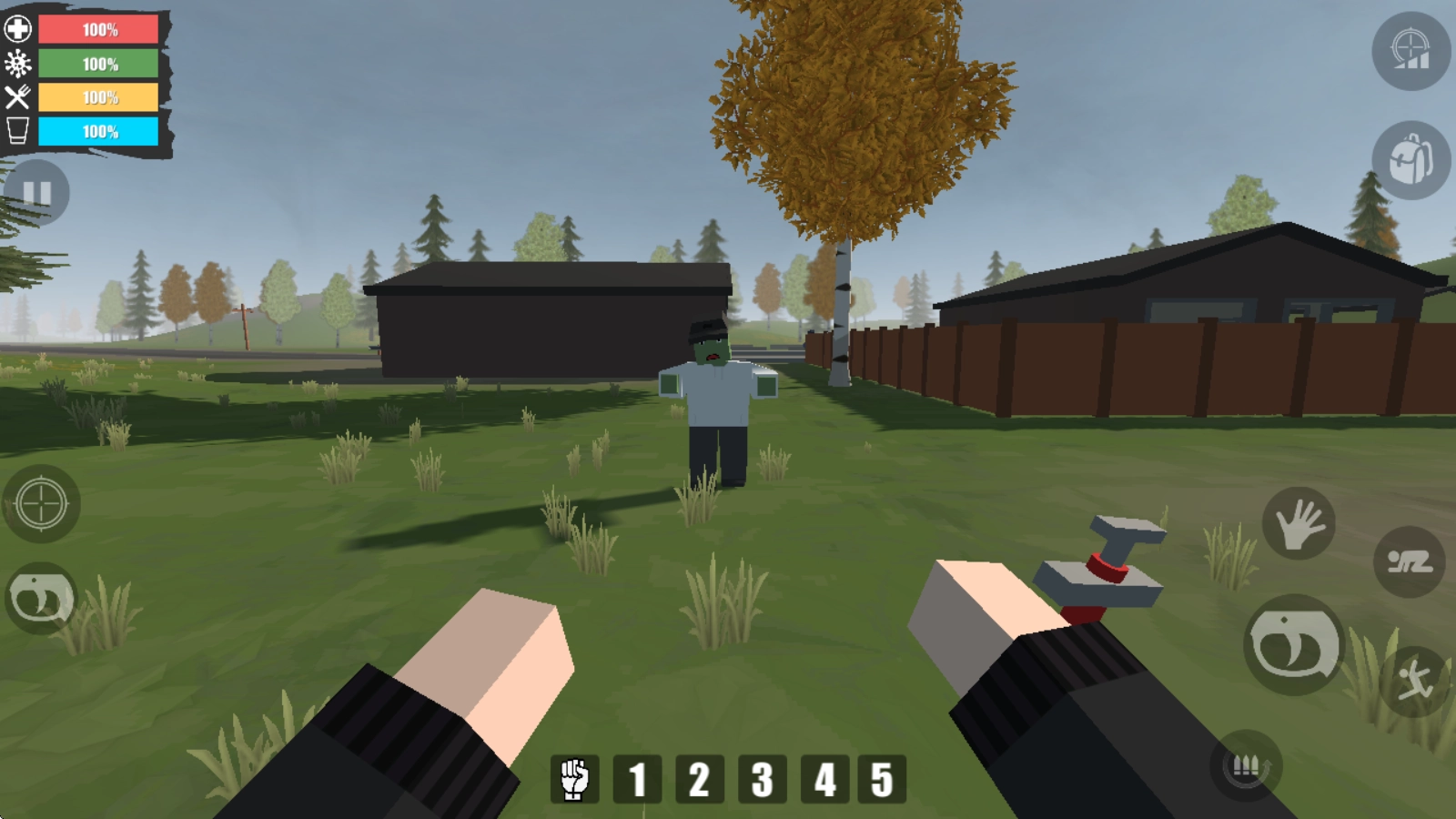 在收集资源的时候,我们可能会遭到僵尸的攻击,这时可以借助武器来展开反击。