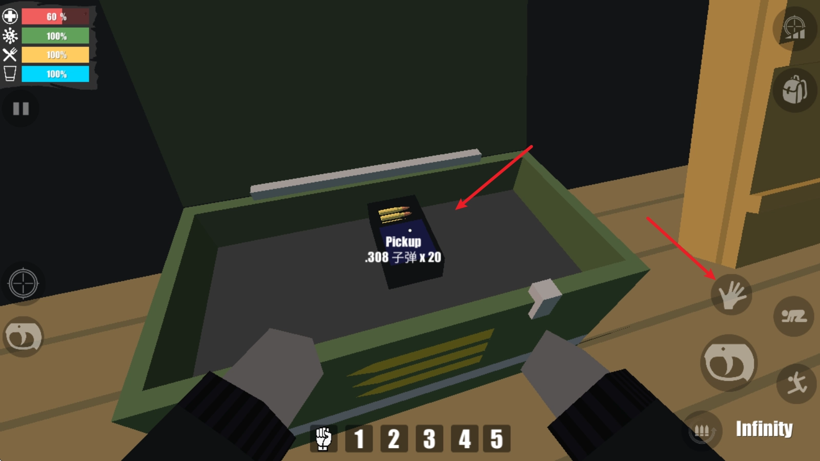 我们得去收集场景里的各类物资,像子弹、食物、药品之类的。