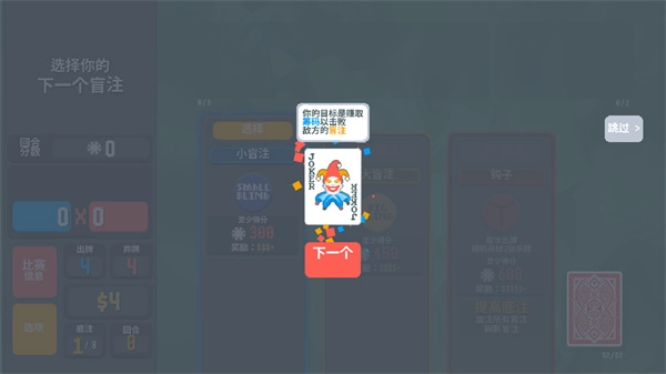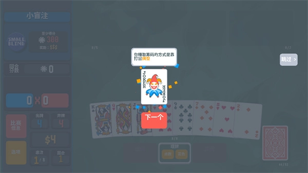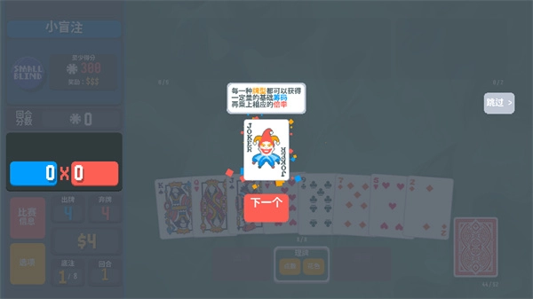 直接点击开始游戏,此时会弹出一个教程,你的任务是积累足够的筹码,力求战胜对手。