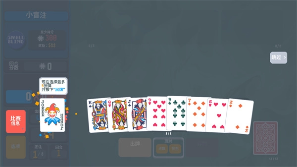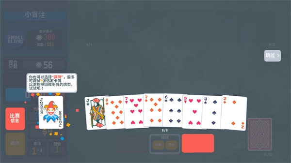 选择这个小盲注,直接去闯关,获得筹码的方式就是打出牌型。