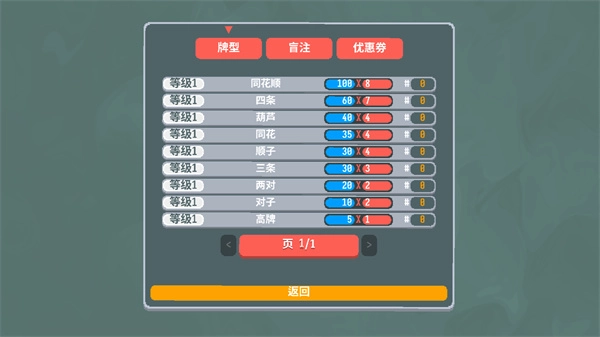 每个牌型都能获得一定的基础筹码,之后再乘以对应的倍数。