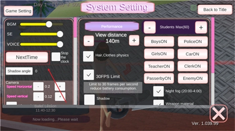 点击菜单里的【系统设置】进入对应界面,在该界面能看到众多可修改的功能选项,其中包含【下一个时间】这一项,点击它就能调整游戏内的时间。