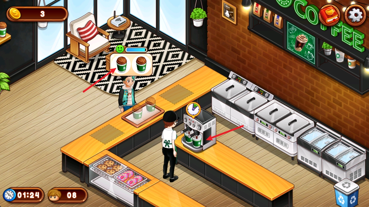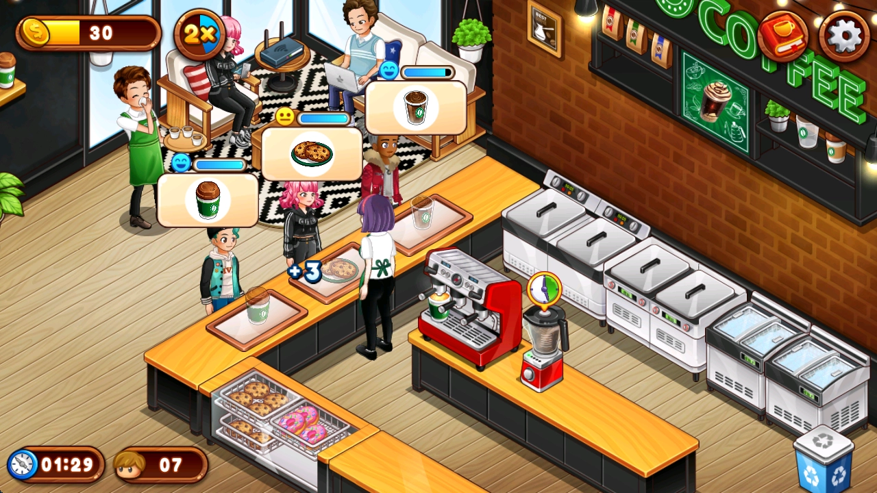 游戏里有各种各样的可爱装饰品可供自由搭配,添加这些装饰品,就能把您的咖啡馆打造成豪华的聚会场所。