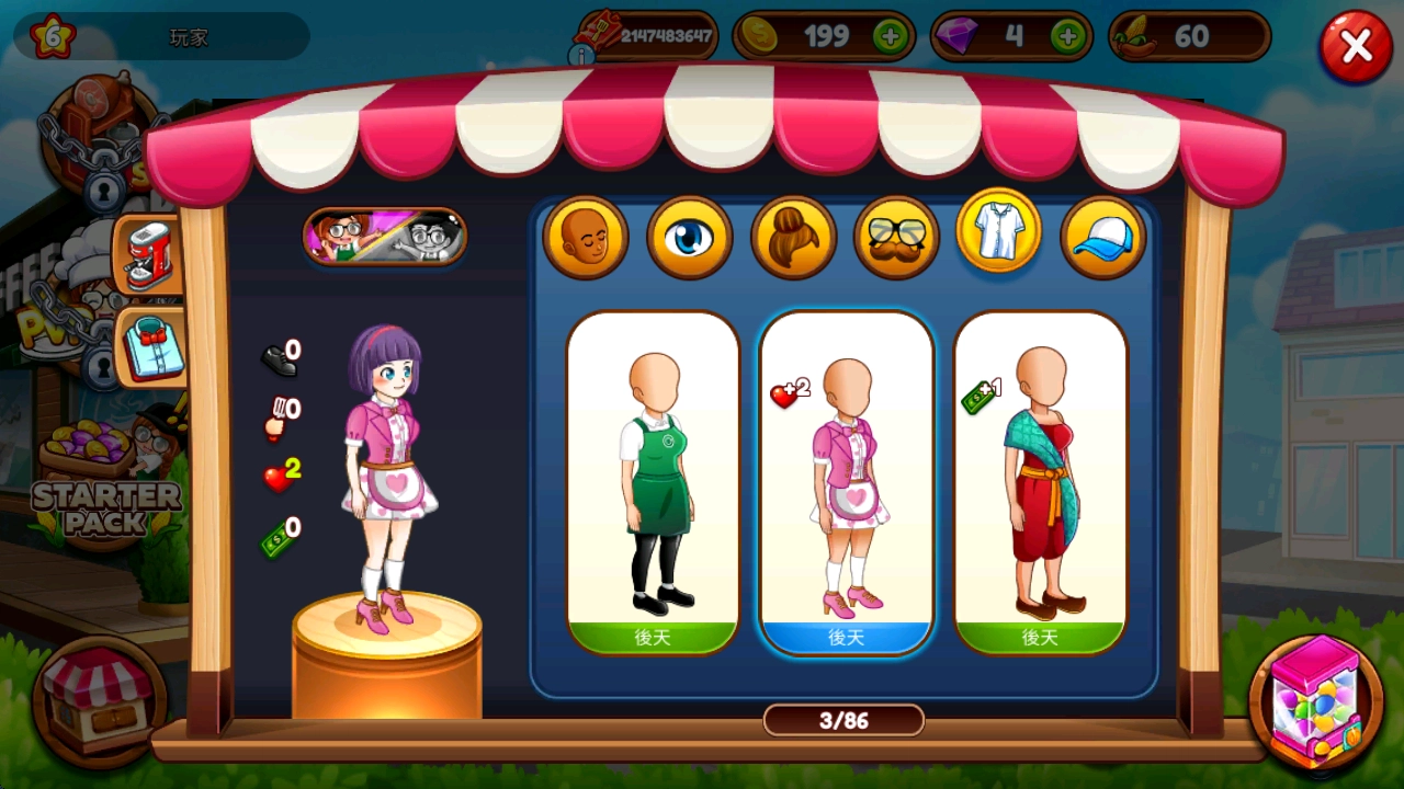 还能自由的为服务员搭配服装。