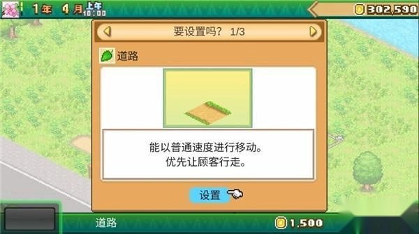 玩家也需要建设道路,以便能以普通速度移动,且优先供顾客行走。