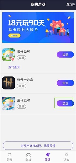选择要加速的游戏,这里小编选择了蛋仔派对;