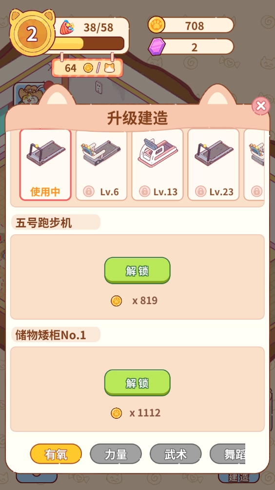 你可以自由搭建专属的猫咪健身房,持续添置和升级各类健身器材,提升店铺的经营收入,从而赚取更多金币。