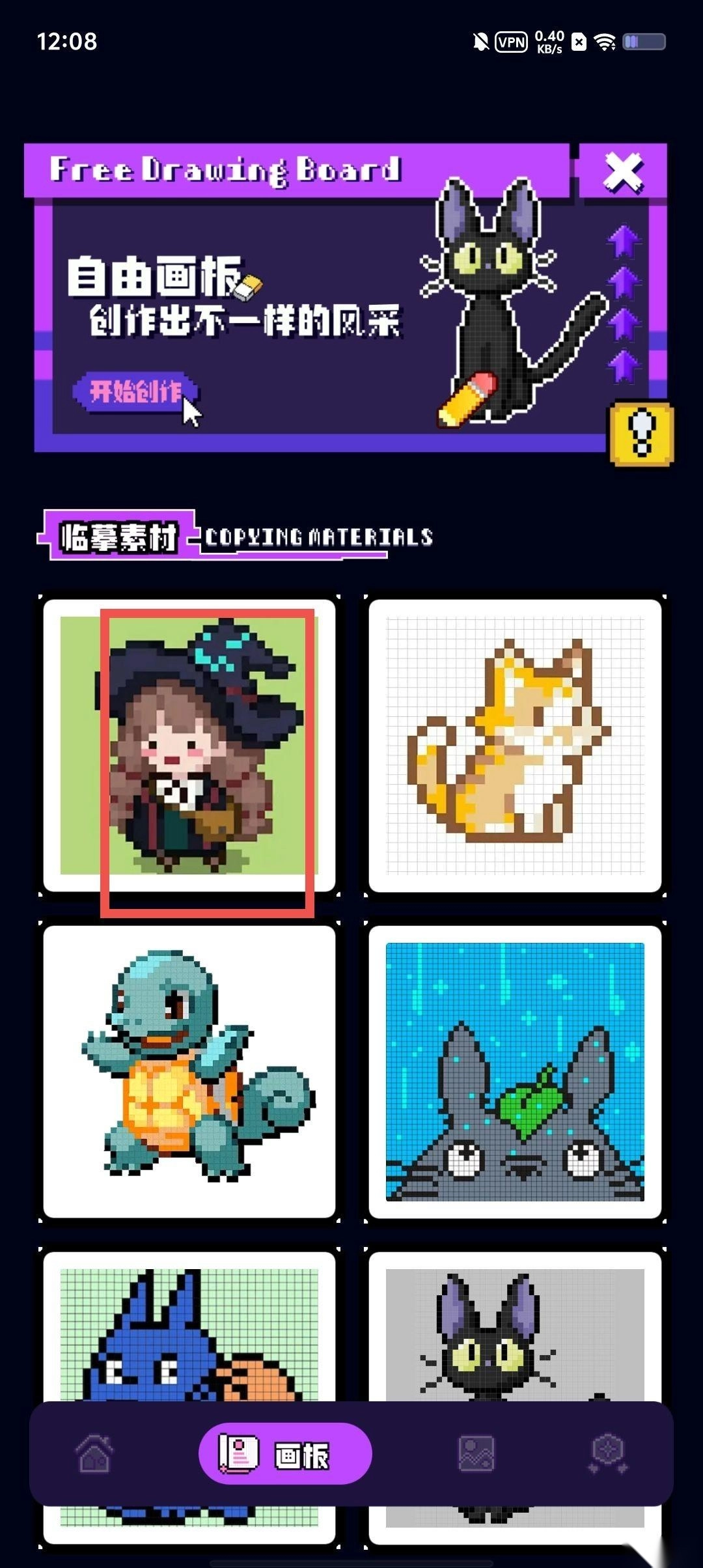 这里还配备了自由画板,能帮助用户自由创作出独具一格的作品。