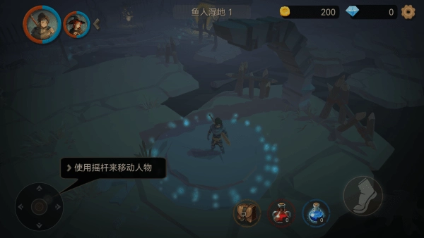 游戏主界面左侧为虚拟摇杆,用于控制角色移动。