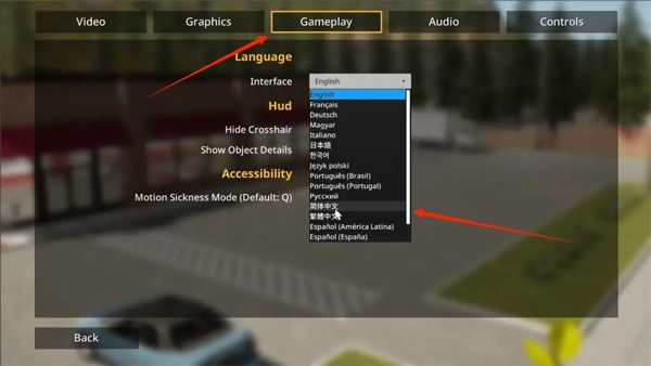 接下来选择Gameplay选项,找到language语言设置项,点击下拉菜单并选择简体中文就完成了。