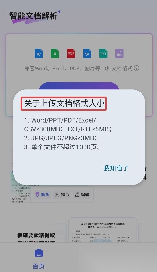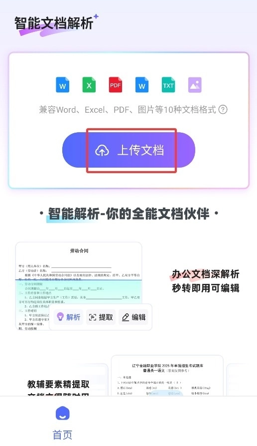 在首页点击上传文档按钮后,系统会自动开展智能解析工作。
