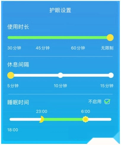 第三步:进入设置界面后,可对休息间隔与睡眠时间进行设定。完成设置后,宝宝在设定的时间段内将无法收听故事,并且界面也会显示对应的提示信息。