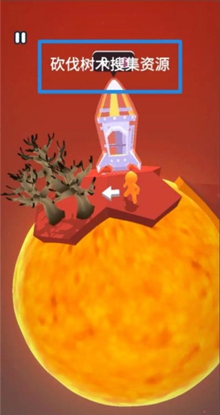 在关卡挑战中,通过砍伐木材,获得最初的资源