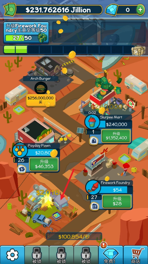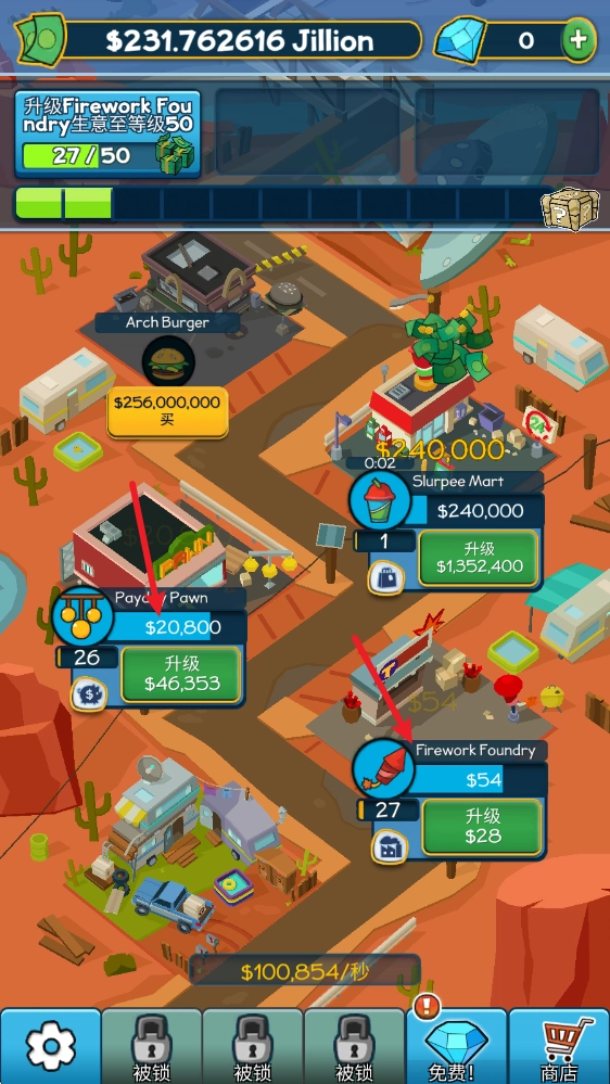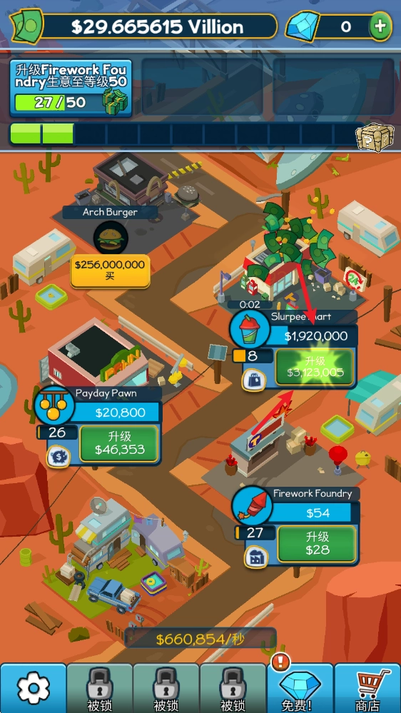 有了足够的财富后,可以升级建筑来提高收益。