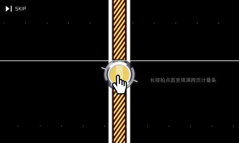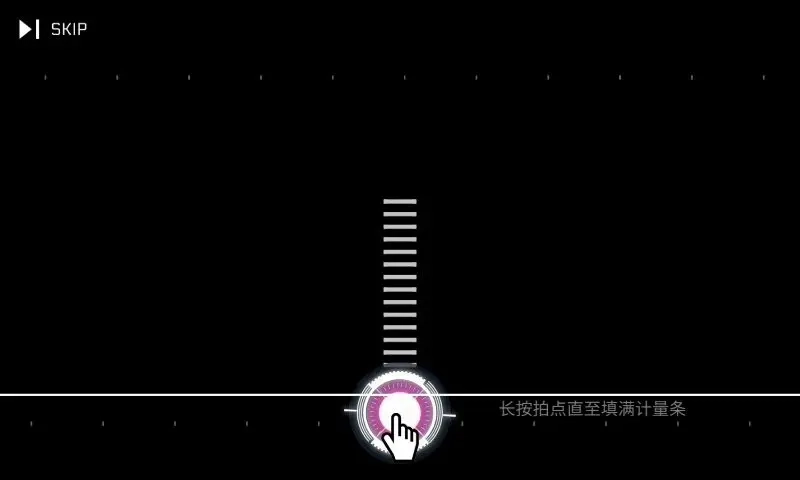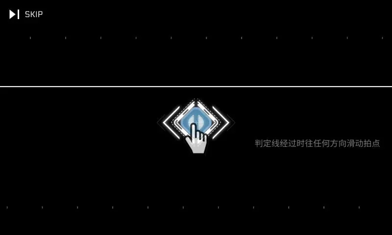 这个教程初次接触时很容易被跳过,原因是它没有第一时间提示这是教程,反而先展示了5屏空白画面,如此一来左上角的SKIP按钮就格外有吸引力。而且跳过操作完全不需要任何确认步骤,不用点击两次,也无需长按,甚至连暂停菜单都不存在。