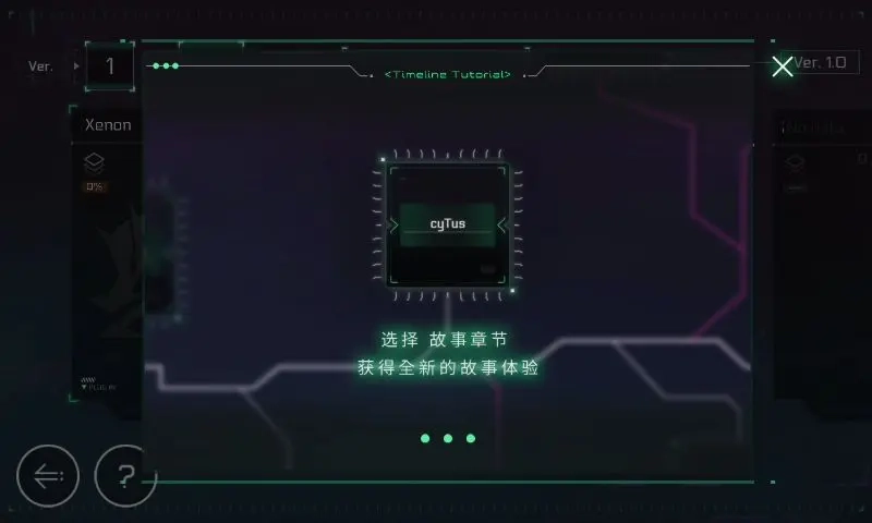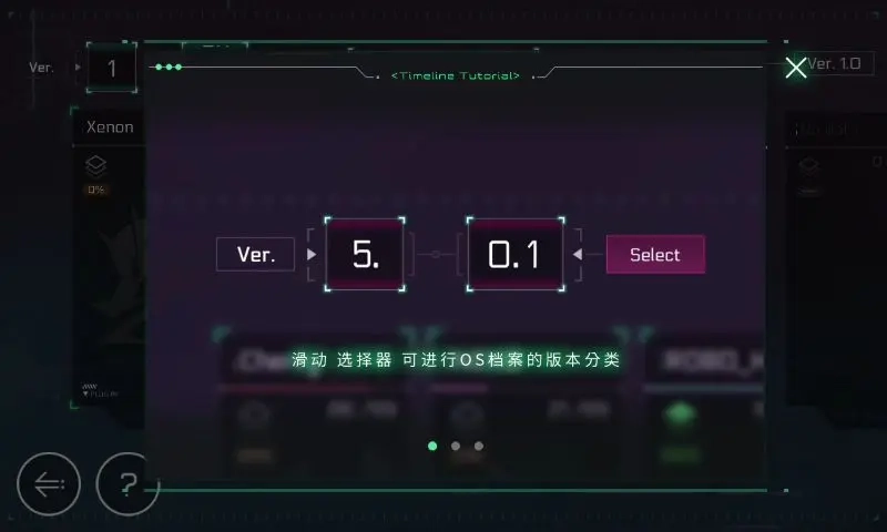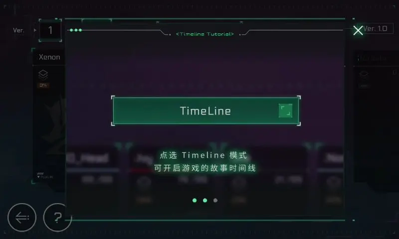 首次进入TL系统时会自动弹出说明。只有被OS系统原本碎片化的剧情排列方式绕晕过,才明白这个系统的价值所在。初期由于剧情尚未解锁,TL里只有一连串问号,以及对应的剧情解锁条件。