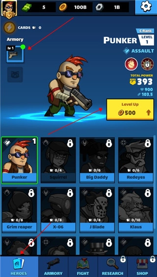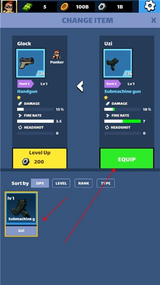 回到主界面后,你可以进入角色升级页面,进一步增强角色的能力,与此同时,还能借助左上角的选项来更换武器。