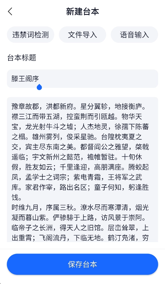 支持本地台本一键导入,也可以直接复制粘贴文本。