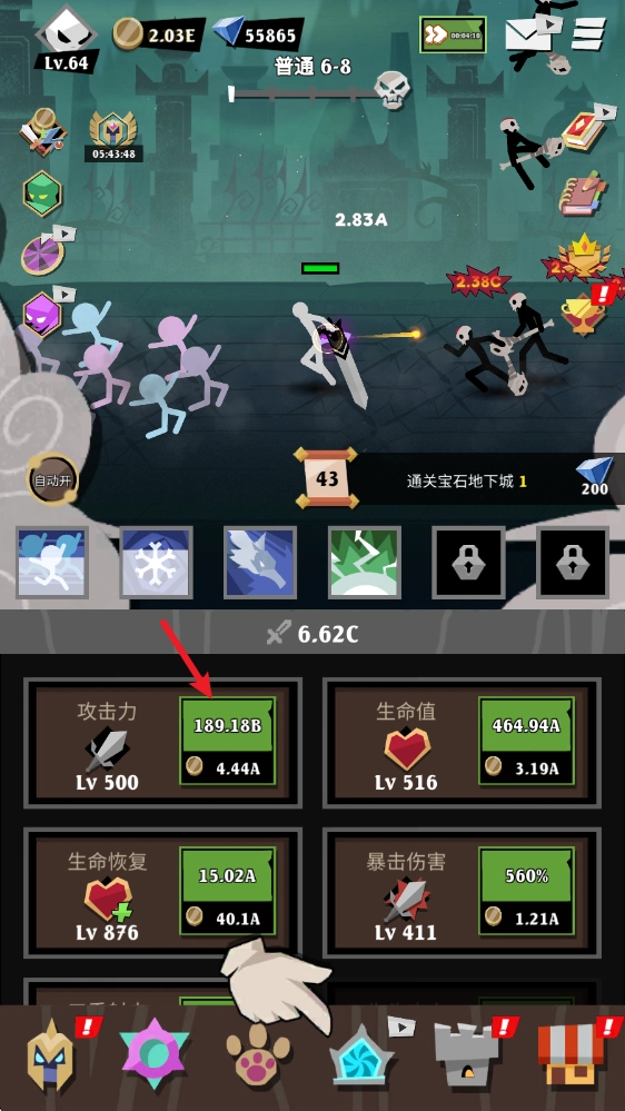 进入游戏后,我们可以看到自己的火柴人在自动战斗。