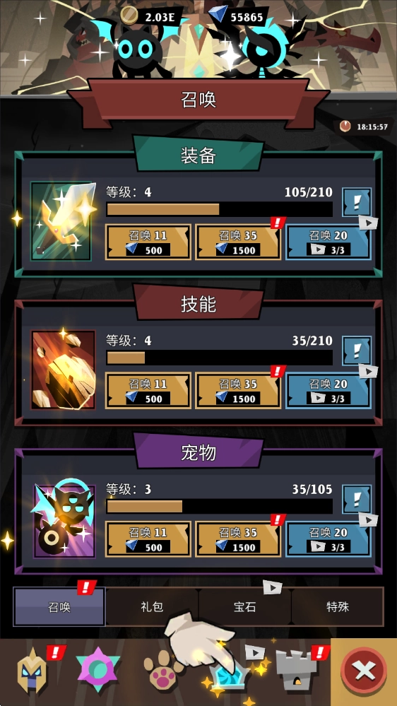 随着完成任务数量的增加,我们会解锁装备、技能以及宠物功能,这些都能在商店里进行抽取。