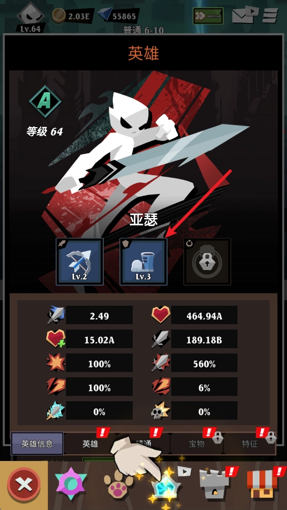 点击下方第一栏,我们就能进入英雄界面,在这个界面里可以更换装备。
