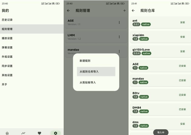 规则编辑器:用户能够借助自定义规则对全网动漫资源进行采集,既可以从规则仓库导入规则,也可以自行新建规则。