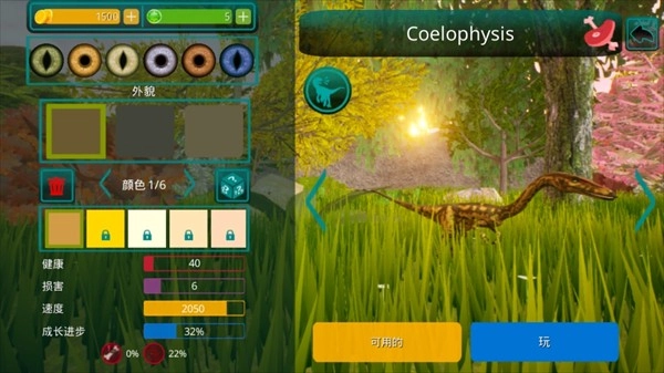 3. 个性化装扮体系,塑造恐龙外观,对各类外貌特征与颜色进行编辑。