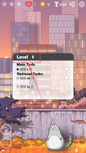 熟悉核心操控:掌握饼干发射的基础操作,明确“匹配同色饼干、击落目标投喂猫咪”的核心目标。