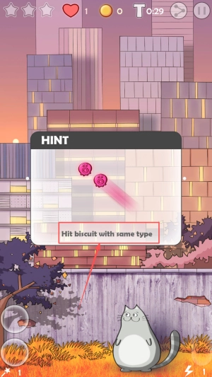 氛围温馨又愉悦:以猫咪投喂饼干作为核心主题,采用柔和治愈的画风,降低闯关时的紧张感,打造出轻松惬意的游玩氛围。