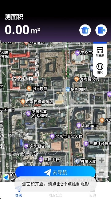 8:在地图界面能够使用“测面积”功能,通过点击两个点来绘制矩形,以此测量区域面积,从而满足特殊场景的需求。