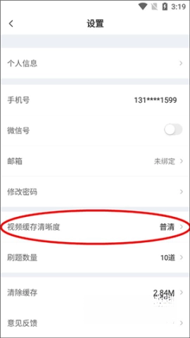 进入设置页面后,你能看到不少实用功能,像修改密码、编辑个人信息都在其中。接下来,你需要在刷题数量这一栏的下方找到“视频缓存清晰度”这个选项并点击它。