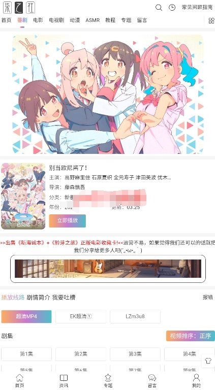 离线功能:用户可以把喜欢的动漫下载到本地,这样在没有网络的时候也能随时观看。