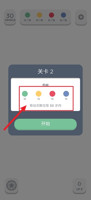 在开启关卡挑战之前,我们能够在此处了解到该关卡的目标要求以及规定的步数限制。