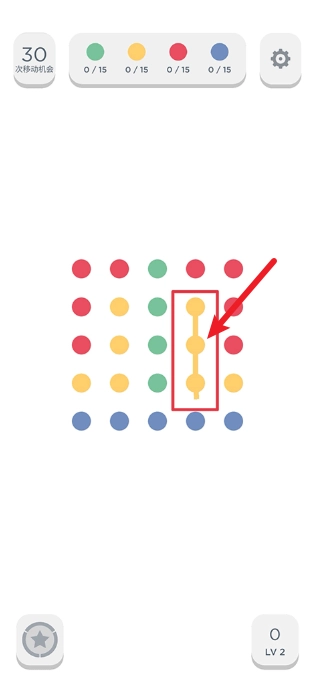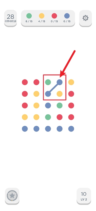 进入关卡挑战后,在同色小球上滑动就能连线,只有两个及以上的小球才能通过连线消除。