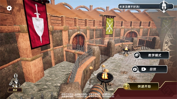 在开心电玩里下载并安装好半剑后,启动游戏进入主界面。这里有几个功能选项:“教学模式”能帮你了解游戏的各类基础操作;“商店”可以买到各种珍稀道具;“回放”功能则能让你回顾自己的精彩操作瞬间。要是想直接开始游戏,点击“快速开始”按钮就可以了。
