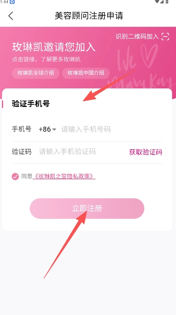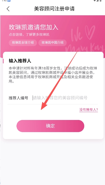 登录前,请点击“申请成为玫琳凯美容顾问”选项,完成专属用户账户的注册。