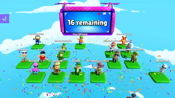 每个小关卡结束后,所有玩家都会被传送到各自的小格子里。紧接着,关卡挑战失败的玩家会向下坠落并结束游戏进程,唯有将其他所有玩家都淘汰出局,才能赢得这场游戏的最终胜利。