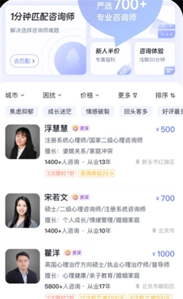 众多专业心理咨询师入驻平台,能够更有效地为用户提供帮助与服务。
