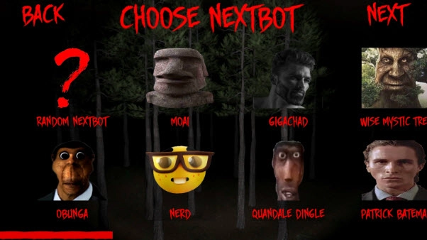 nextbot追逐是一款以后室为背景的逃脱类游戏。在游戏里,玩家要操控主角从各类恐怖生物的追捕中逃脱。这款游戏的氛围营造与场景设计都十分出色。随着紧张又诡异的音效响起,你得时刻留意各个角落,毕竟这些角落和拐角处说不定什么时候就会冒出吓人的怪物!