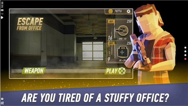 《逃离办公室》是一款紧张刺激的动作射击游戏,游戏背景设定在被僵尸群入侵的办公室场景中。玩家将扮演一名普通白领,在末日危机中为了生存,必须拿起武器对抗源源不断的僵尸怪物,最终成功逃离办公室。游戏操作简单易懂,但充满了生存挑战,玩家需要通过射击僵尸获得金币,并用金币购买武器装备、提升角色的战斗能力,每一个决策都关系到生死存亡。