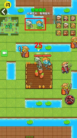 挑选阵营,开启对决:点击“怪物X2”这类快捷入口启动匹配,可自主选择农夫或者僵尸的身份。