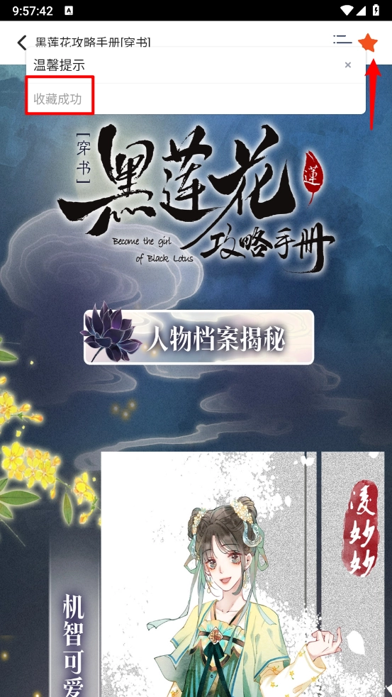 接着进入阅读界面,点击右上角的小星星图标(如图所示),就能完成收藏操作了。