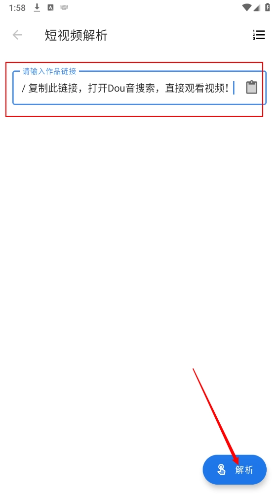 如图所示,把需要解析的链接粘贴进去,然后点击右下角的“解析”按钮。