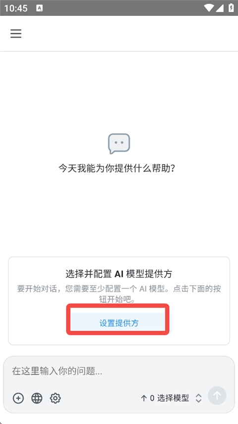 打开Chatbox AI应用,接着点击界面上的【设置提供方】选项。