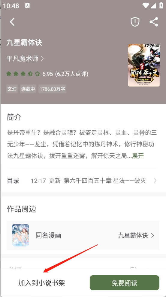 点开想看的小说进入详情页,接着点击“免费阅读”。
