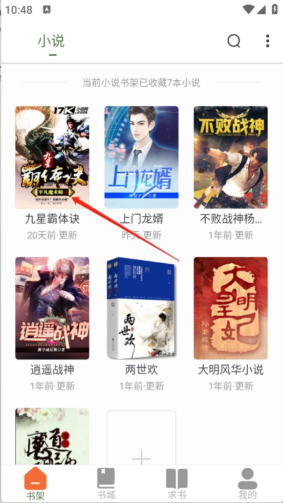 回到首页点击“书架”就可以看到小说了。