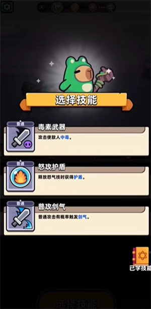 玩家可以依照图中的顺序来挑选技能,而且还能持续对技能进行升级。目前存在一个技能,效果是连击时增加攻击,这个技能应该存在bug——不仅普通攻击触发连击时会加攻,连基础技能使用时也能获得攻击加成,这样一来一局游戏里角色的攻击数值可以堆得很高。拿到这个技能后,建议重点堆叠防御属性,搭配每回合自动增加防御、血量低于30%时生成护盾、普通攻击命中后附加护盾等效果,应该能顺利推进好几关。想尝试这种玩法的玩家赶紧去体验,等官方修复这个bug后,可能又得回到每天挂机的状态了。
