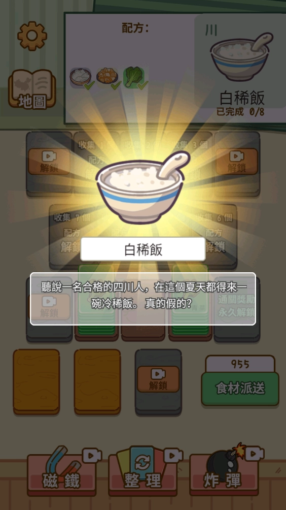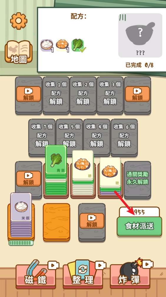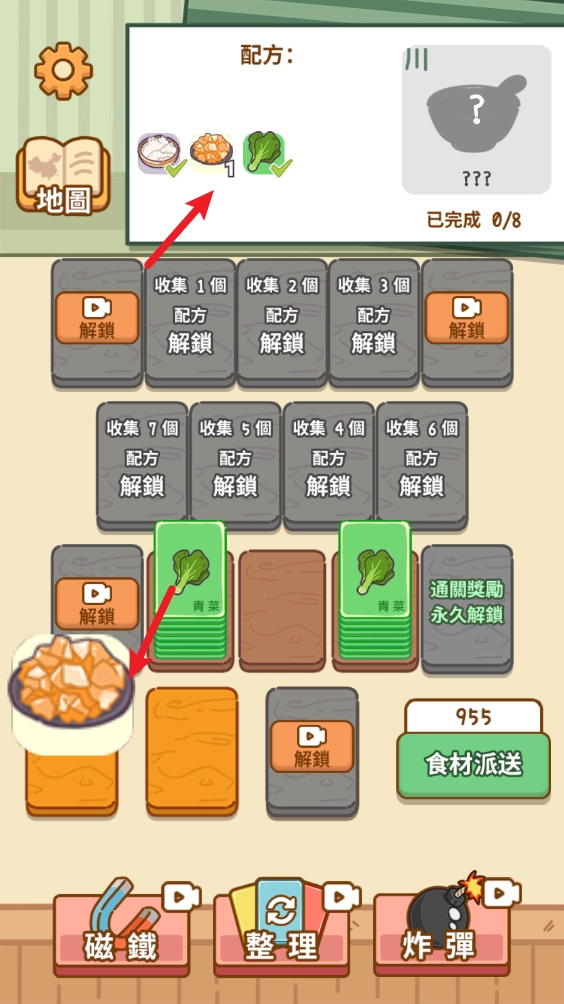 凑齐了上方的食材之后就可以解锁菜谱。
